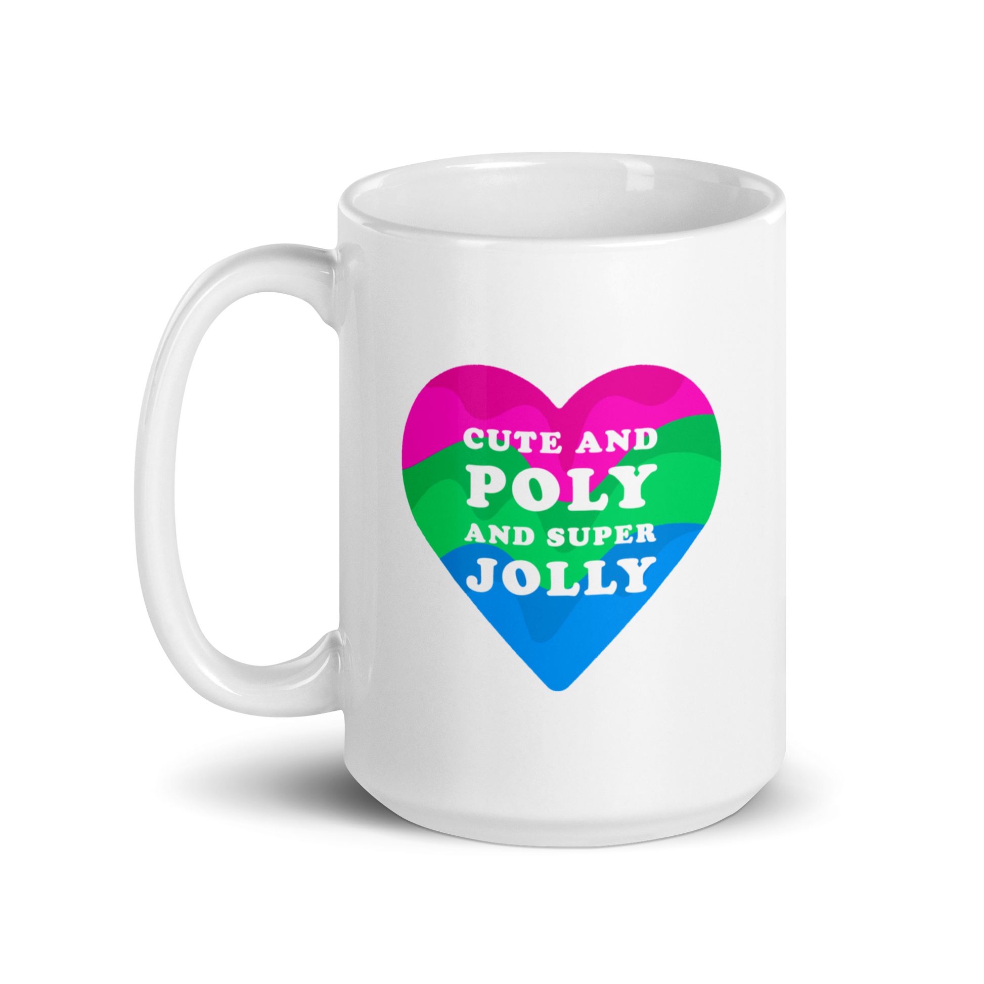 "Cute and Poly and Super Jolly" Polysexual Pride White Glossy Mug